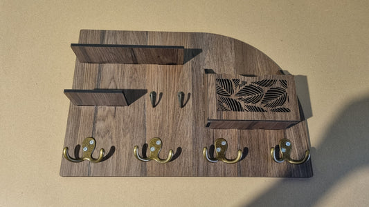 Colgador con ganchos negros de madera